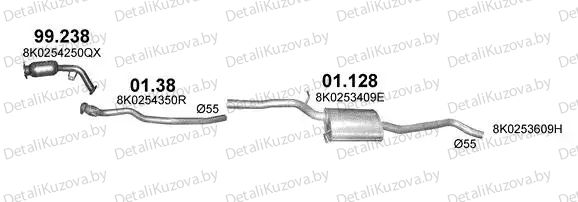 ГЛУШИТЕЛЬ AUDI A4 (B8), 08 - 11 Фото деталей носит справочный характер. Правая/левая стороны могут не соответствовать описанию запчастей, грунт/оцинковка могут не совпадать. Уточняйте, пожалуйста, у менеджера важные для Вас моменты!