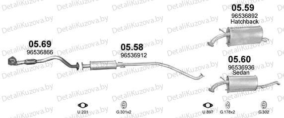 ГЛУШИТЕЛЬ CHEVROLET KALOS (T200) Фото деталей носит справочный характер. Правая/левая стороны могут не соответствовать описанию запчастей, грунт/оцинковка могут не совпадать. Уточняйте, пожалуйста, у менеджера важные для Вас моменты!