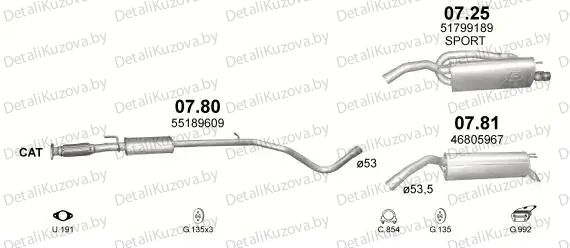 ГЛУШИТЕЛЬ FIAT BRAVO (II) Фото деталей носит справочный характер. Правая/левая стороны могут не соответствовать описанию запчастей, грунт/оцинковка могут не совпадать. Уточняйте, пожалуйста, у менеджера важные для Вас моменты!