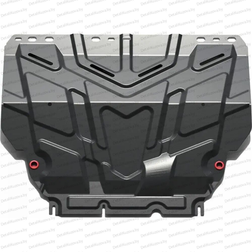 • Глубокий штамп дополнительно усиливает конструкцию защиты. Подштамповка в местах крепления защищает крепеж от срезания.