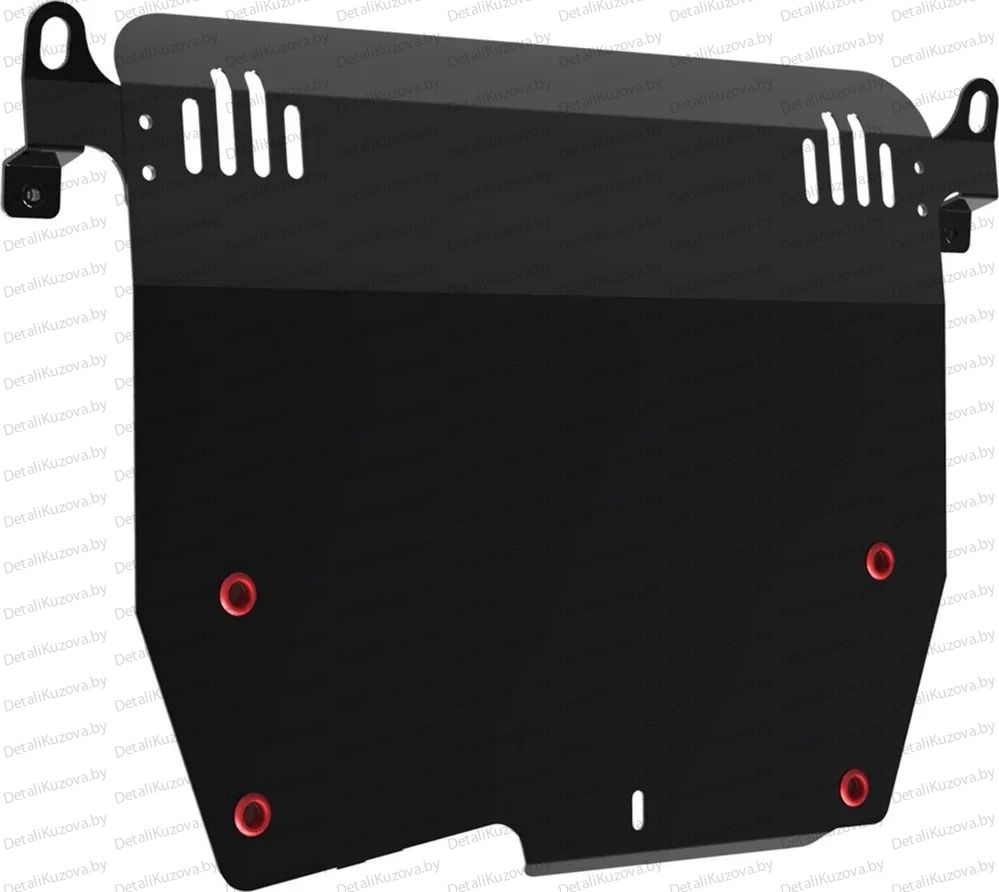 • Глубокий штамп дополнительно усиливает конструкцию защиты. Подштамповка в местах крепления защищает крепеж от срезания.