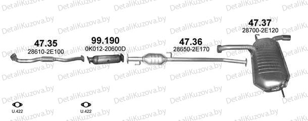 ГЛУШИТЕЛЬ HYUNDAI TUCSON (I), 05 - 09 Фото деталей носит справочный характер. Правая/левая стороны могут не соответствовать описанию запчастей, грунт/оцинковка могут не совпадать. Уточняйте, пожалуйста, у менеджера важные для Вас моменты!