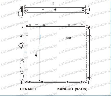 РАДИАТОР RENAULT KANGOO, 09.97 - 04.03 Фото деталей носит справочный характер. Правая/левая стороны могут не соответствовать описанию запчастей, грунт/оцинковка могут не совпадать. Уточняйте, пожалуйста, у менеджера важные для Вас моменты!