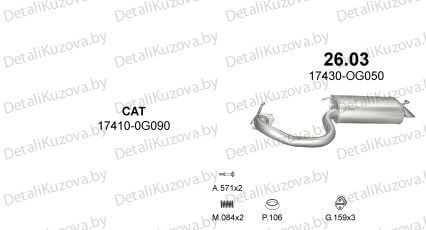 Данная часть глушителя подходит на Тойота Авенсис 2003 - 10/2008 гг, а именно: